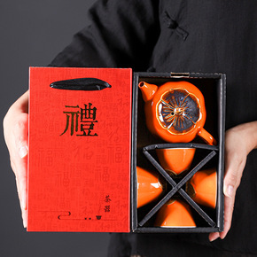 柿子陶瓷功夫茶具套装1壶4杯如意茶壶可加logo婚...