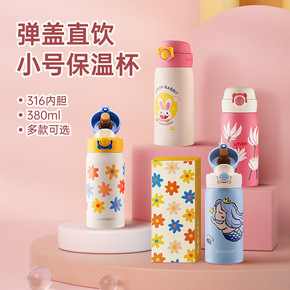 可爱ins儿童水杯304不锈钢保温杯弹跳吸管水壶卡...