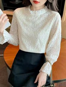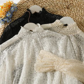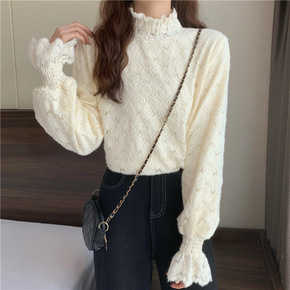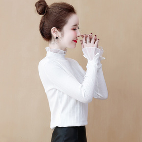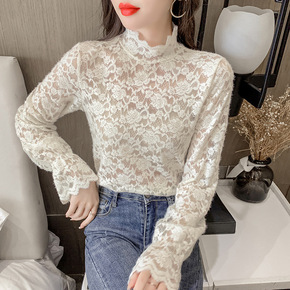 女装新款气质半高领蕾丝打底衫秋季内搭镂空花边时尚长...
