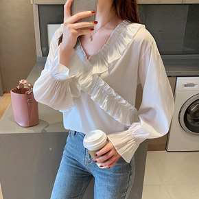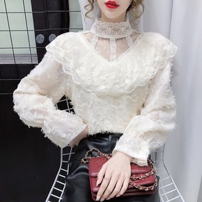 2021实拍现货新款秋冬款长袖蕾丝雪纺衫女上衣时尚...