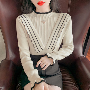 2021秋冬新款高领时尚针织打底衫长袖女内搭修身堆...