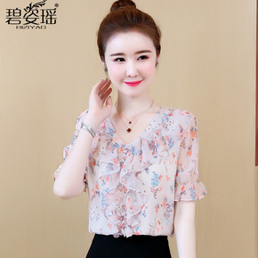 碎花雪纺衫女短袖2020夏季新款甜美荷叶边洋气小衫...