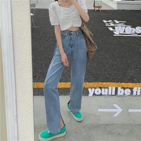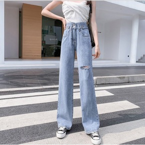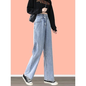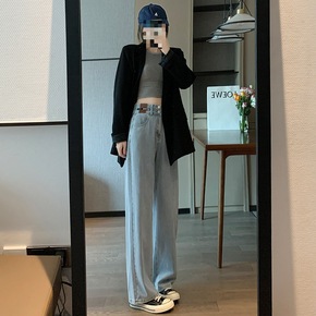 高腰牛仔裤女夏天薄款直筒宽松裤子新款显瘦新塘垂感阔...