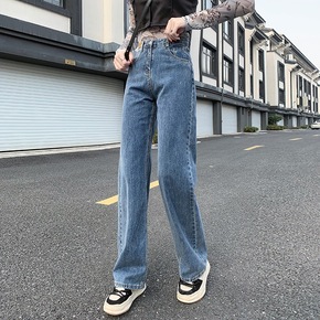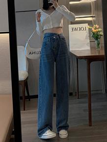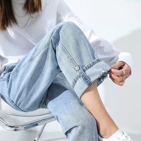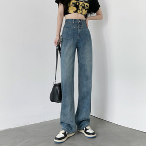 设计感牛仔裤女春秋直筒宽松裤子夏季2022年新款小...