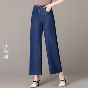 春夏季中老年牛仔裤女九分裤大码高腰薄款阔腿裤直筒弹...