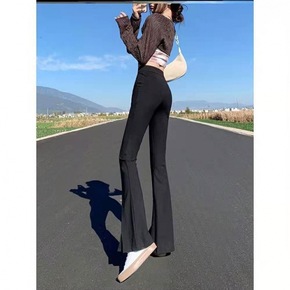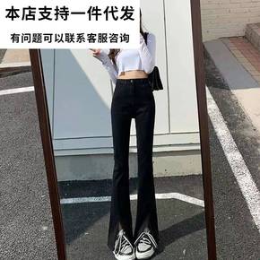 黑色雪纺喇叭裤子女夏季薄款高腰显瘦百搭不规则垂感休...