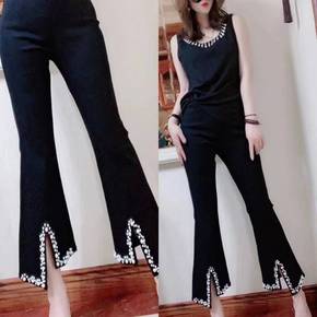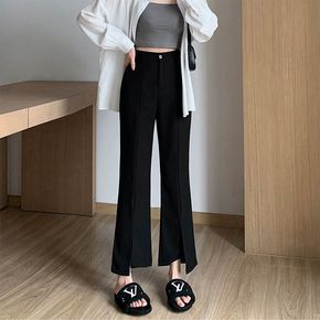 微喇开叉九分西装裤女夏季薄款大码高腰梨型身材显瘦不...