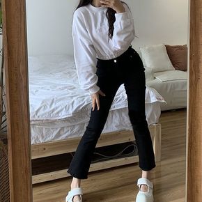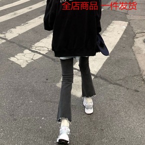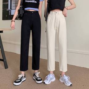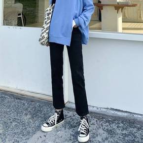 微喇牛仔裤女黑色高腰显瘦直筒紧身微弹破洞九分女新款...