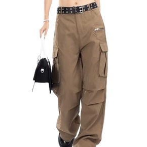 棕色工装裤女秋季薄款美式复古设计感小众宽松高腰显瘦...