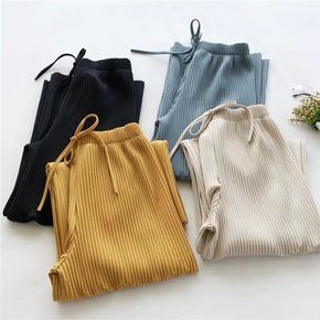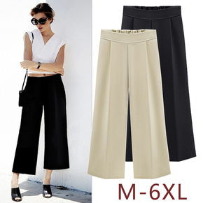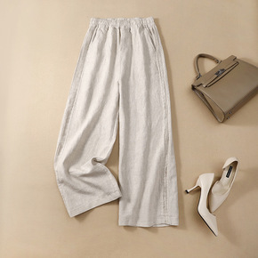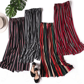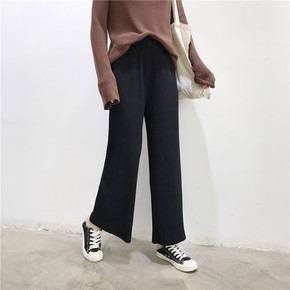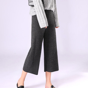 春秋新品粗条纹阔腿裤女 九分加肥加大 弹力 松紧腰...