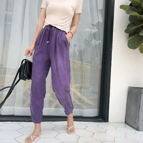 大码九分裤女春秋棉麻休闲裤宽松哈伦裤跨境萝卜裤全棉...