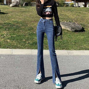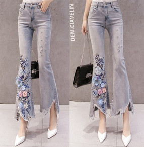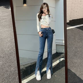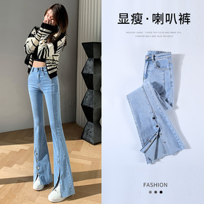 开叉喇叭牛仔裤9834新款时尚女装韩版大码弹力修身...