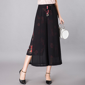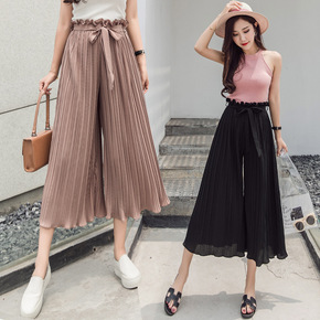 实拍2021夏季坠感阔腿裤女高腰雪纺九分裤宽松荷叶...