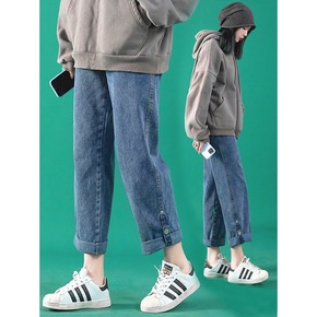 牛仔裤女2022年春秋新款高腰垂感宽松大码直筒九分...