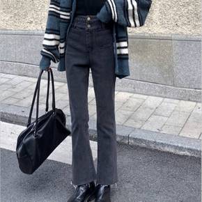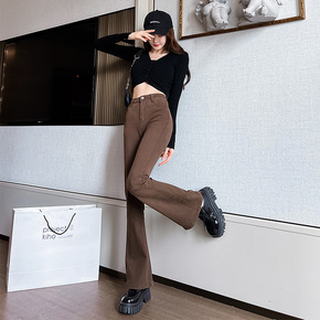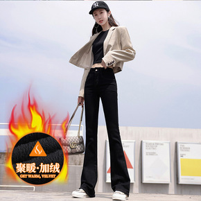 黑色微喇加绒牛仔裤女高腰秋冬2022年新款修身显瘦...