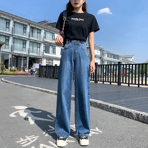 阔腿裤女宽松直筒牛仔裤2022年春夏新款高腰显瘦小...