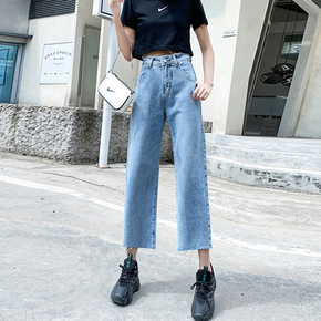 2022年春秋新款高腰牛仔裤女直筒宽松港风显瘦九分...