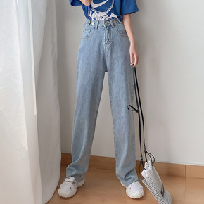 韩国小直筒牛仔裤女高腰2021显瘦宽松长分烟管裤秋...