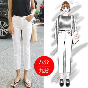 2021新款高腰弹力白色直筒毛边牛仔裤女九分裤韩版...