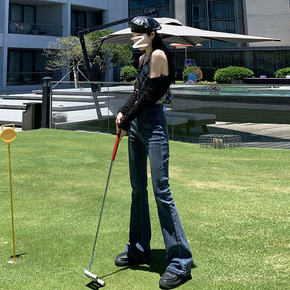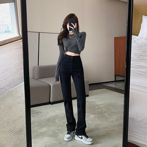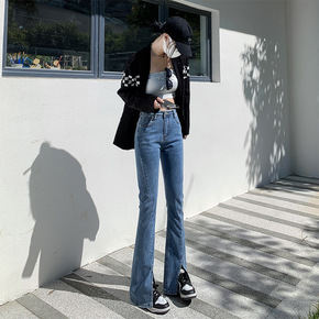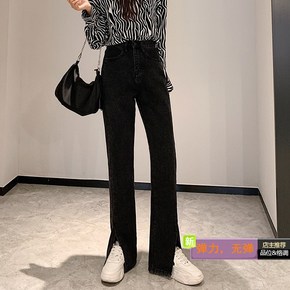 微喇开叉拖地牛仔裤女2022年春秋新款高腰显瘦直筒...