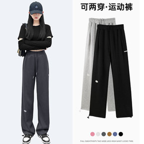 运动裤宽松直筒休闲阔腿长裤秋冬季加绒束脚小个子灰色...