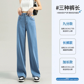高腰阔腿裤春秋牛仔裤女新款宽松垂感拖地直筒裤子...