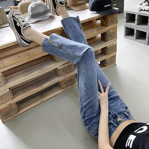 高腰微喇叭牛仔裤女港风休闲裤弹力显瘦紧身小个子20...