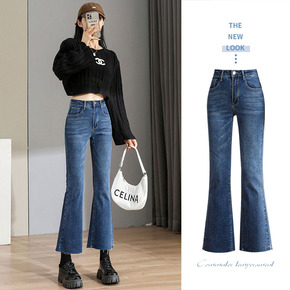 复古微喇牛仔裤女2022年秋季新款高腰修身显瘦弹力...