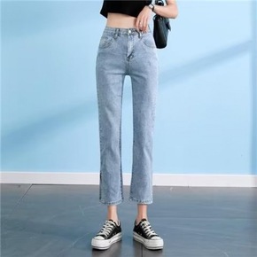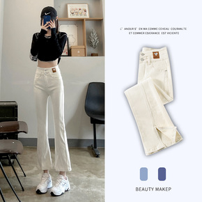 白色开叉牛仔裤女高腰春装2022年新款夏薄款小个子...