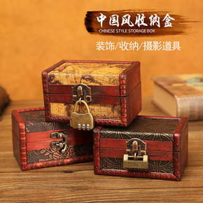 复古箱子 木质防尘影视拍摄道具工艺品摆件 橱窗装饰...