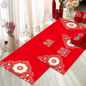 结婚地垫喜庆门垫婚房地毯卧室床边浪漫喜字红色门口家...