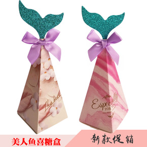 50个装跨境喜糖盒欧式婚礼美人鱼糖果包装盒三角形P...