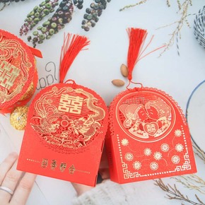 婚礼糖盒批发订婚红色中式满月结婚喜糖盒子中国风小号...