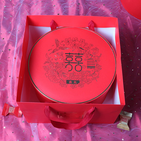 厂家批发红色婚庆双层圆形礼盒满月喜糖包装盒婚礼喜上...