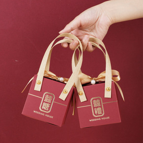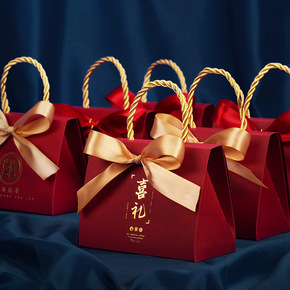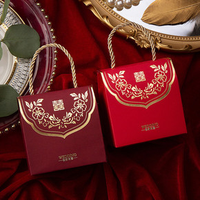 2022中式结婚红色喜糖盒婚礼糖盒简约手伴娘礼盒包...