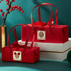 红色周岁百日宴伴手礼盒巧克力糖纸礼品盒结婚手提翻盖...
