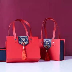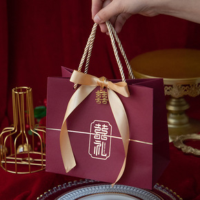 金喜礼盒喜庆红丝巾蝴蝶结手拎喜糖盒伴手礼盒时尚喜字...