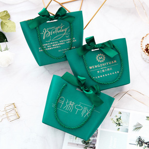 中华 绿色森系礼品袋子手提精致ins小号礼盒小清新...