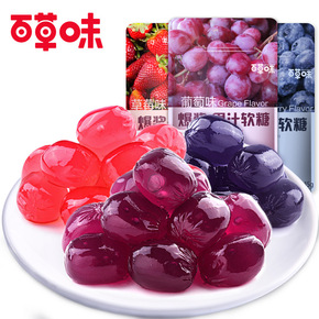 百草味爆浆水果汁qq软糖45g果粒奶昔糖48g葡萄...