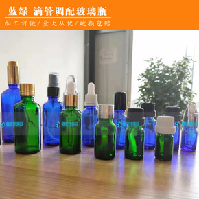 批发绿色精油玻璃滴管瓶精华原液瓶蓝色化妆品分装瓶喷...