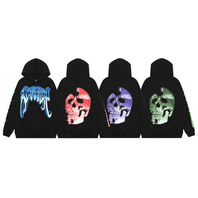 美式街潮复仇者子弹孔骷髅头印花连帽卫衣嘻哈宽松男女...