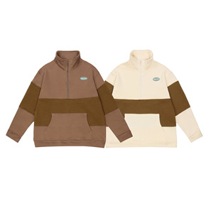 美式嘻哈ins潮拼接半拉链Polo领卫衣男女宽松b...