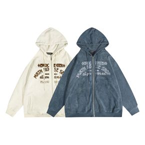ACCENT 美式复古灯芯绒字母绣花拉链卫衣...