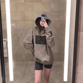 灰色连帽卫衣连帽oversize卫衣女2021新款...