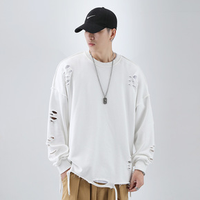 2021秋季新款破洞宽松圆领卫衣男韩版潮流街头嘻哈...