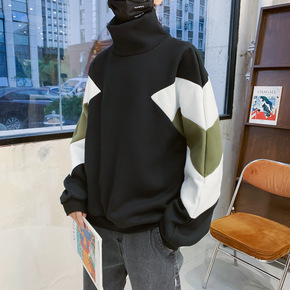 港风潮牌bf高领卫衣男韩版宽松套头衣服春秋季ins...