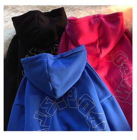 国潮冬装加绒加厚长袖连帽男女情侣卫衣韩版潮流学生宽...
