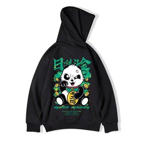 欧美风行嘻哈潮牌熊猫加绒国潮连帽外套男中国风款大码...
