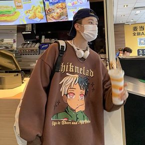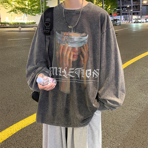 浅变圆领卫衣男秋季无帽上衣潮牌嘻哈美式高街青少年痞...