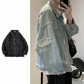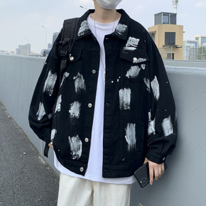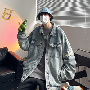 扎染牛仔外套男秋冬季嘻哈工装夹克宽松潮牌ins痞帅...